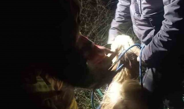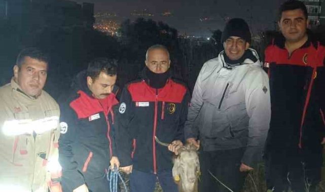 Su kuyusunda mahsur kalan keçiyi itfaiye kurtardı