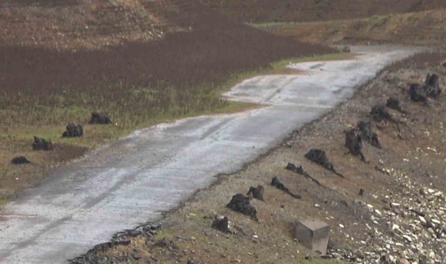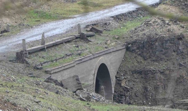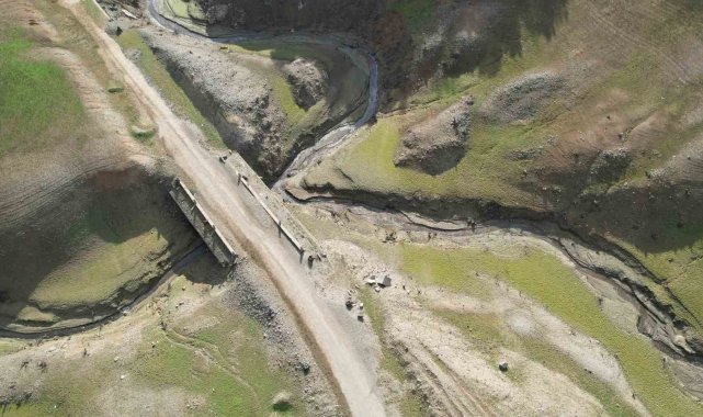 Su seviyesi düşen Gökçe Barajı'nda tarihi yolun kalıntıları gün yüzüne çıktı