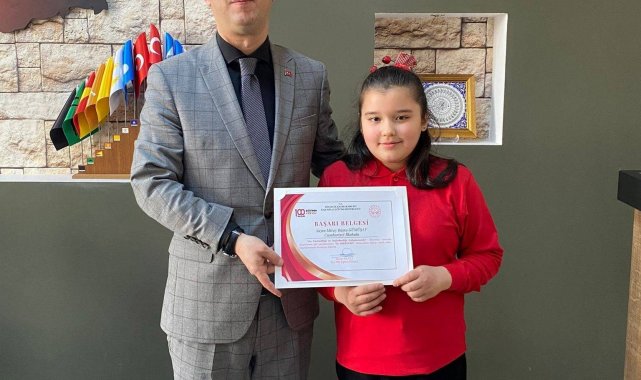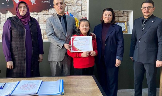 Cumhuriyet İlkokulu Müdürü Sebiha Kaya, il geneli su verimliliği seferberliği yarışması şiir dalında birinci olan Miray Büşra Gümüşay'ı ve sınıf öğretmeni Serpil Budak'ı tebrik ederek başarılarının devamını diledi.