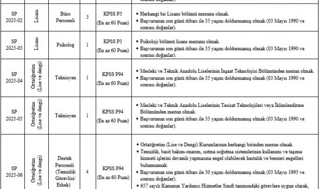 SUBÜ, KPSS ile lisans ve ortaöğretim mezunu toplam 15 sözleşmeli personel alımı için ilana çıktı.