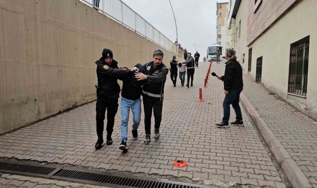 Kayseri'de suç örgütüne yönelik operasyonda özel harekat polisini yaralayan şüpheli de dahil gözaltına alınan 9 kişi adliyeye sevk edildi.