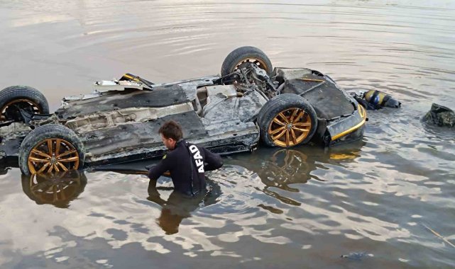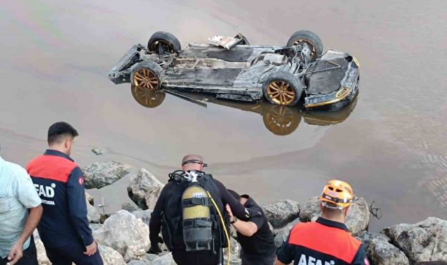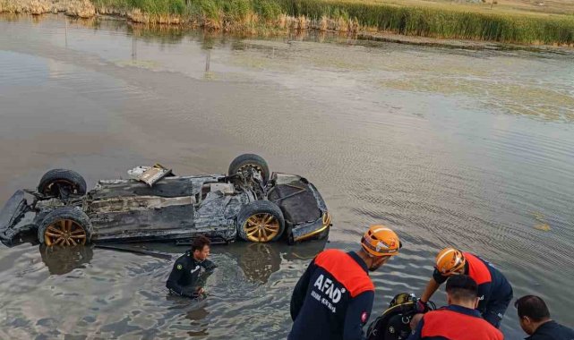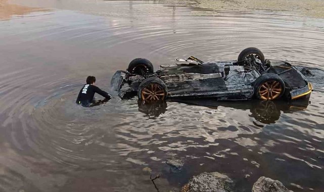 Sulak alana uçan otomobilden çıkarılan 3 kişi hastaneye kaldırıldı