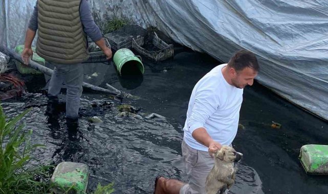 Aydın'ın Sultanhisar ilçesinde çilek sulama havuzuna düşen 5 yavru köpek, belediye ekiplerinin zamanında müdahalesiyle kurtarıldı.