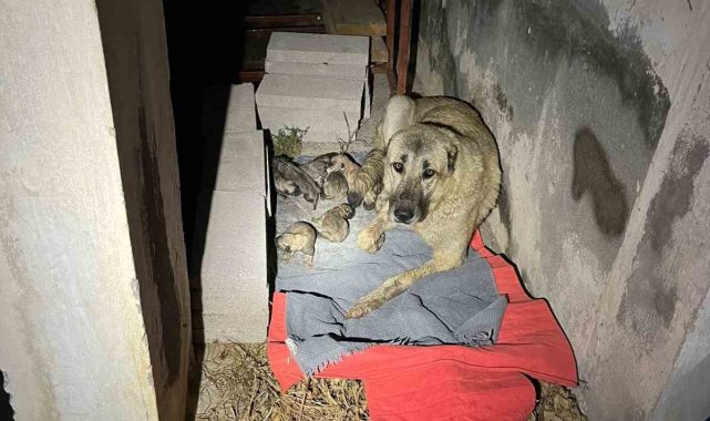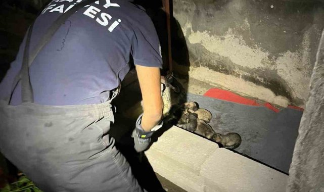 Sulama kanalına düşen anne köpek ve yavrularını itfaiye ekipleri kurtardı