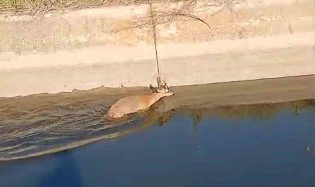 Sulama kanalına düşen karaca vatandaşlar tarafından kurtarıldı