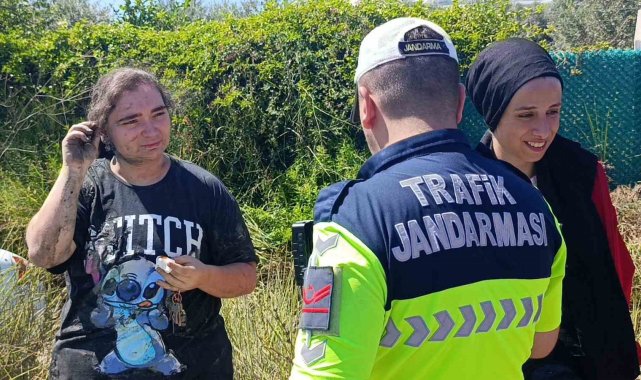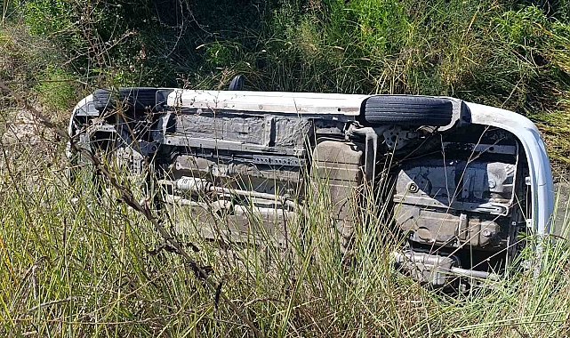 Sulama kanalına uçan otomobilin sürücüsü kazayı yara almadan atlattı