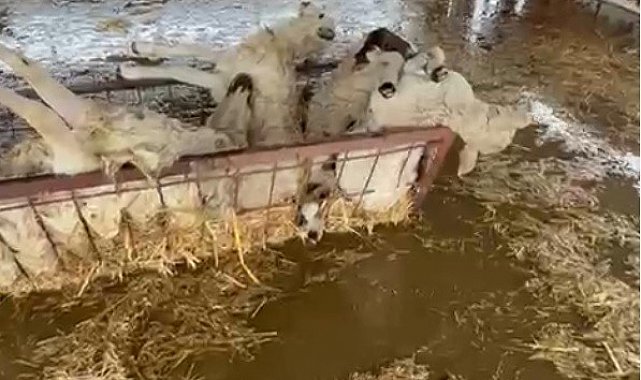 Aydın'ın Söke ilçesinde etkili olan sağanak sonrasında su basan hayvan damındaki 10 koyun telef oldu.