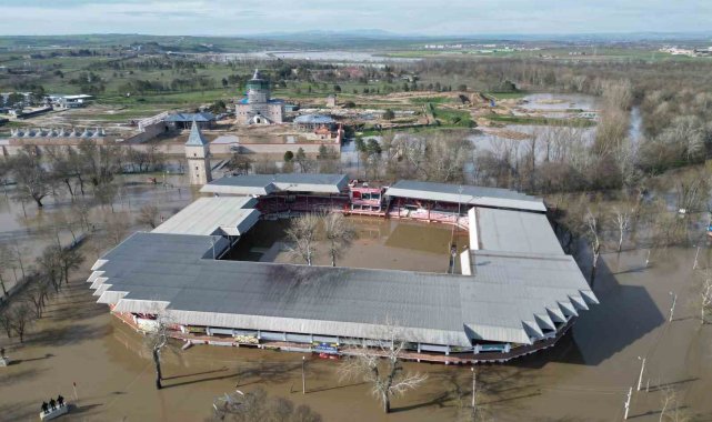 Tarihi Kırkpınar Yağlı Güreşleri'nin yapıldığı Edirne Sarayiçi güreş alanı, son günlerde etkili olan yağışların ardından tamamen sular altında kaldı. Debisi yükselen Tunca Nehri, yatağından çıkarak nehir kenarında bulunan Sarayiçi Er Meydanı'nı kapladı.