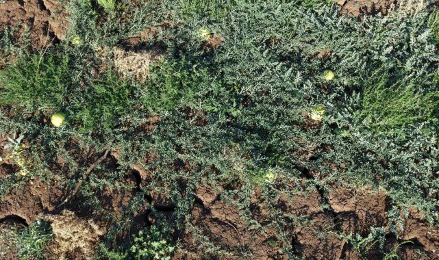 Kırıkkale'de yaz mevsiminin kavurucu sıcaklıkları, kuraklığın etkisini her geçen yıl daha da artırıyor. Kuruyan göletler ve yeraltı sularının çekilmesi, kentteki tarımsal üretimden içme suyu kaynaklarına kadar geniş bir alanda etkisini hissettiriyor. Merkez ilçeye bağlı Ahılı köyünde tarım arazilerini besleyen gölet tamamen kurudu. Bir zamanlar suyla dolup taşan gölet, bugün derin çatlaklarla kaplı kurak bir alana dönüştü. Kuruyan gölet yatağında kendiliğinden yetişen karpuzlar ise dikkat çekici bir görüntü oluşturdu.