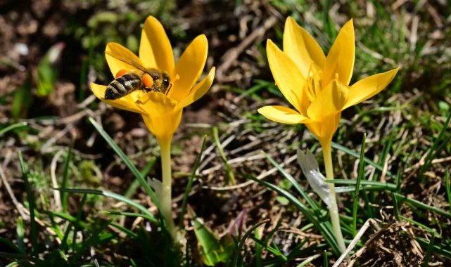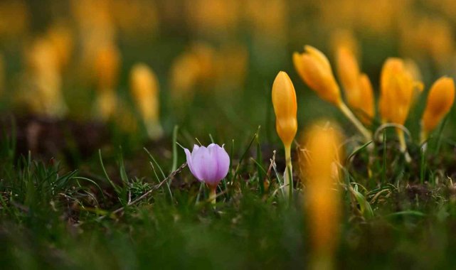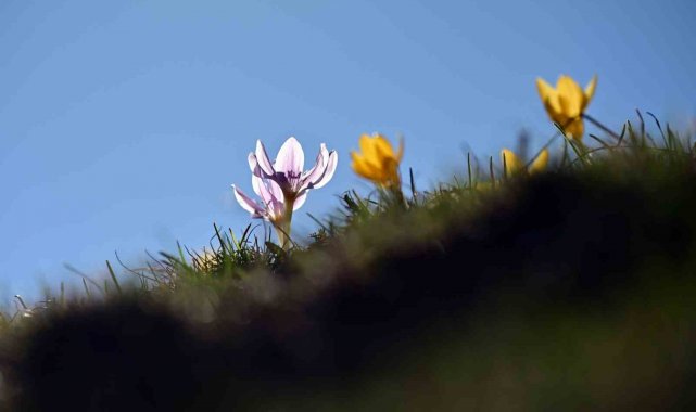 Süleymaniye'de renk cümbüşü: Sarı ve mor çiğdemler açtı