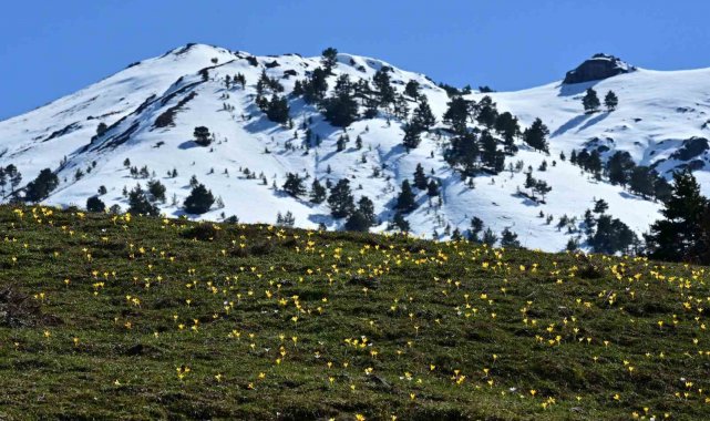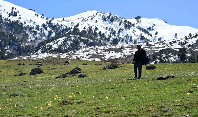 Bölgenin yüksek kesimlerinde kışın izleri olan kar kütleleri henüz tam olarak erimemişken, Musalla Vadisi boydan boya sarı ve mor renkli çiğdem çiçekleriyle kaplandı.