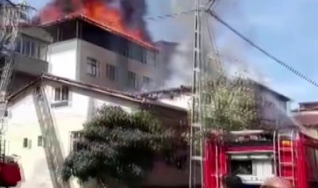 Sultanbeyli'de çıkan yangında bitişik iki binanın çatısı küle dönerken, 1 kişi dumandan etkilendi.