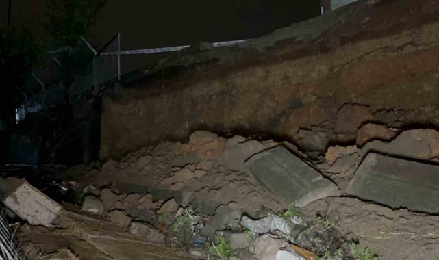 Sultanbeyli'de çöken istinat duvarı paniğe neden oldu. Olayda bir araç hasar görürken, yağış nedeniyle toprağın kayma riskinin olduğu aktarıldı.