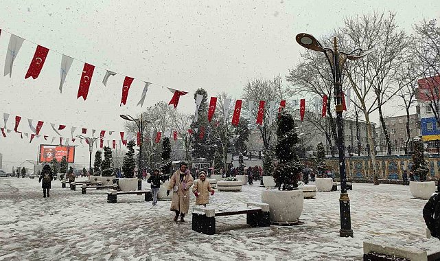 Sultangazi beyaza büründü, çocuklar karın tadını çıkardı