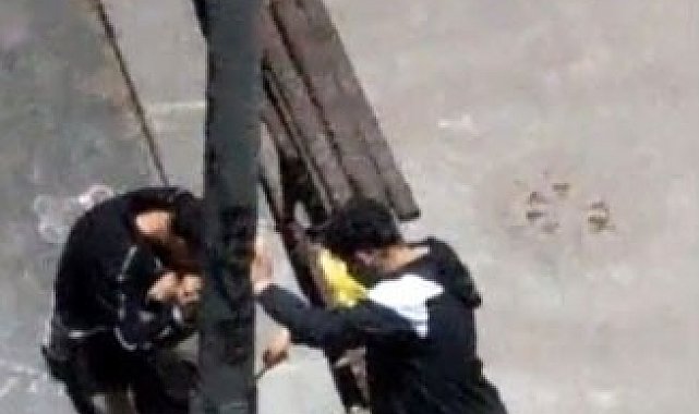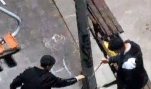 Sultangazi'de iki genç, parkın içinde bulunan aydınlatma direğini ellerindeki çubuklarla kırdı. Yaşanan o anlar cep telefonu kamerasıyla görüntülendi.