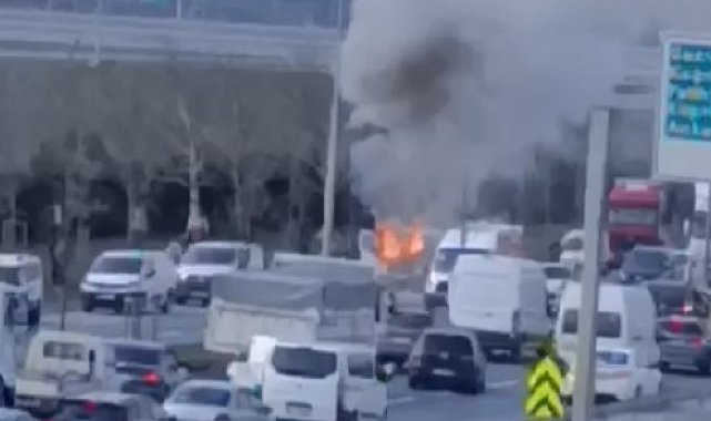 Alevlerin yükseldiği kamyonetteki yangın ise çevredeki vatandaşlar tarafından cep telefonu kamerası ile kaydedildi.