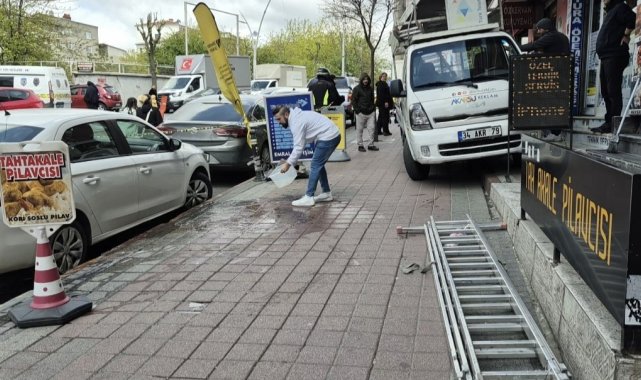 Sultangazi'de kamyonet üzerinde tabela montajı yaparken şiddetli rüzgar nedeniyle dengesini kaybederek düşen işçi hayatını kaybetti.