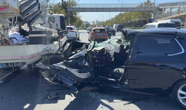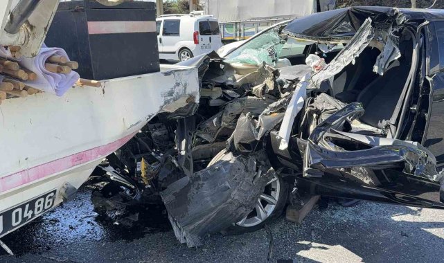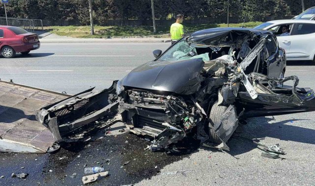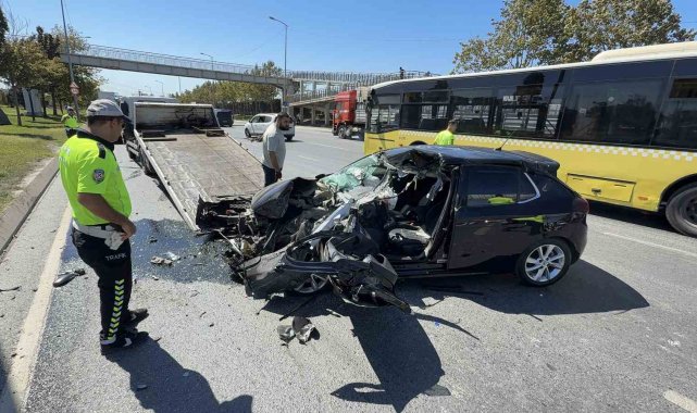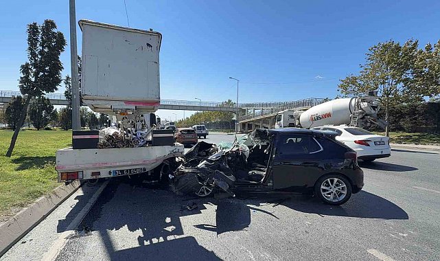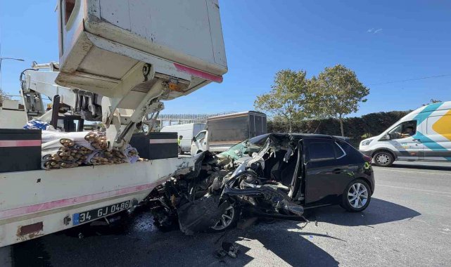 Sultangazi'de otomobil, yol kenarında duran vinçe çarptı: 2 yaralı