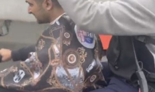 Olay, Sultangazi Cebeci Mahallesi'nde meydana geldi. Seyir halindeki bir motosikletin arkasında oturan berber, motosikleti kullanan arkadaşını tıraş etmeye başladı. Tehlikeli yolculuk sırasında berber, tıraş makinesiyle sürücünün saçlarını kısaltırken, bir yandan ise dengesini kaybetmemeye çalıştı. O anlar, trafikteki başka bir sürücü tarafından cep telefonuyla saniye saniye görüntülendi. Görüntülerde berberin, motosiklet hareket halindeyken saç kesimi yaptığı, sürücünün ise tıraşa rağmen motosikleti kullanmaya devam ettiği görüldü. Sosyal medyada da paylaşılan görüntüler, tepki çekti. İzleyenler, hem şaşkınlık yaşadı hem de tehlikeli hareket nedeniyle tepki gösterdi.