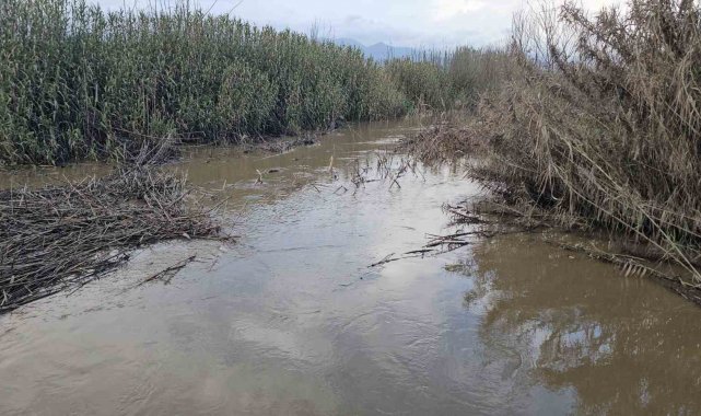 Aydın'ın Sultanhisar ilçesine bağlı Atça Mahallesi Çomaklı Ovası'nda bulunan Kokar Kurutma Kanalı taştı, tarım arazileri göle döndü.