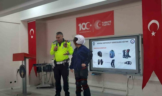Aydın'ın Sultanhisar ilçesinde trafik kazalarının önlenmesi ve motosiklet sürücülerinin bilinçlendirilmesi amacıyla öğrencilere yönelik eğitim düzenlendi.