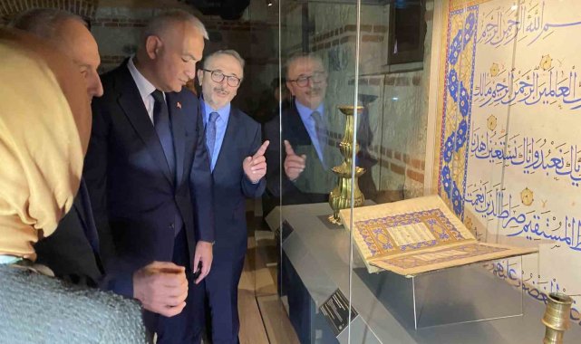 Açılışta konuşan Kültür ve Turizm Bakanı Mehmet Nuri Ersoy, "Kur'an-ı Kerim, hayatımızın her anında ve her alanda doğru yol ve yönde ilerlememizi sağlayan kutlu bir rehber; manevi dünyamızın nuru ve kutbudur. Ecdadımızın gösterdiği derin saygı ve özen neticesinde ilahi vahiy, kültür ve medeniyetimizin en özel sanat uygulamalarının da öznesi olmuştur. Bu sergi, Mushafların sanatsal ve kültürel zenginliklerini gözler önüne sermekte; zanaatkarların hayret ve hayranlık uyandıran sabır ve becerilerine, titizlik ve hassasiyetlerine şahitlik etmemizi mümkün kılmaktadır. Yüce Allah'ın kelamını sayfalara nakşederken, onu en güzel şekilde bezemenin çabasını vermiş olan ecdadımız mushafları kültür mirasımızın çok özel birer taşıyıcısı haline getirmişlerdir. Tarih boyunca pek çok hükümdar ve devlet büyüğü mushafların yazılması, süslenmesi, ciltlenmesi gibi sanat ve ilim ehli olmayı gerektiren uygulamaların sürdürülmesini ve geliştirilmesini desteklemiş; alim ve ustaları himaye etmişlerdir. Sultanların vakfettiği ve hediye ettiği mushafların taşıdığı kültürel değeri anlamak için onlara bu farkındalıkla bakmak, bu detayları bilmek önemli ve gereklidir. Bugün, Yazma Eserler Kurumu Başkanlığımız tarafından sizlere sunulan bu nadide koleksiyon; hat sanatındaki büyük ustaların eserlerini, dönemin estetik anlayışını ve sultanların manevi dünyalarını yansıtan örnekleri bir araya getirmiştir. İlk kez sergilenen Yakut el-Müsta'sımi, Şeyh Hamdullah, Hafız Osman, Ahmed Karahisari gibi büyük hattatların kalemleriyle yazılan ilahi vahiy, devirlerinin en kıymetli müzehhipleri tarafından tezyin edilip usta ciltçilerin elinde iki kapak arasına alınarak sanat tarihimizin paha biçilmez örneklerini oluşturmuştur. Her biri söz konusu bu sanat dallarının asırlar boyunca gelişerek devam eden incelikli geleneğinin muhteşem birer temsilcisidir. Şunun da altını özellikle çizmek isterim ki başta Osmanlı olmak üzere sultanların himayesinde bulunan bu mushaflar, köklü vakıf geleneğimiz sayesinde korunmuş ve günümüze ulaşmıştır. Vakıf anlayışının sadece ihtiyaç sahibine uzanan bir el olmadığını, kültür ve medeniyeti bütünüyle muhafaza etme, yaşatma ve geliştirme anlayışı olduğunu bilmek gerekiyor" dedi.