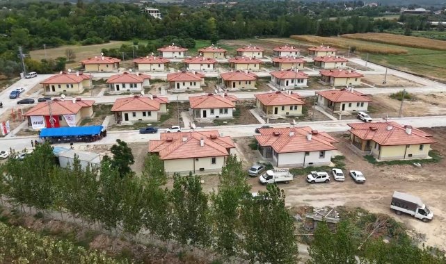 Osmaniye'nin Sumbas ilçesinde yapımı tamamlanan 27 köy evinin anahtarı hak sahiplerine teslim edildi.