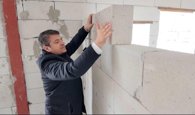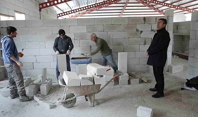 Belediye Başkanı Abdurrahman Tutdere, inşaat alanında yaptığı incelemeler sırasında sadece bilgi almakla kalmadı, çalışmaları bizzat destekledi. Eline malayı alan Başkan Tutdere, duvar ören ustalara yardım etti.