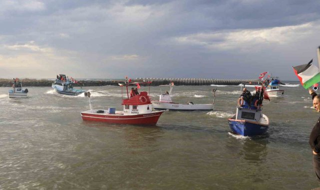 Sakarya'nın Karasu ilçesinde İsrail'in Gazze'de devam eden soykırımları kınanarak, ablukayı kırmak için mücadele veren Sumud Filosu'na destek için tekneler denize açıldı.