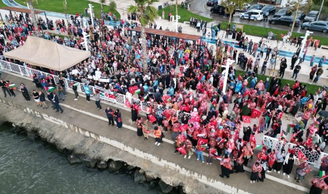 Karasu ilçesi Yeni Mahalle Fener yanında yapılan etkinlikte, İsrail'in Gazze'de devam eden soykırımları kınanarak, ablukayı kırmak için mücadele veren Sumud Filosu'na destek için tekneler denize açıldı. Türk ve Filistin bayraklarıyla alanda toplanan vatandaşlar, 7 Ekim'de başlayan çatışmaların küresel dengeler açısından bir dönüm noktası olduğunu ifade ederek Filistin halkına destek çağrısını yineledi. Programda konuşan Sakarya Büyükşehir Belediye Başkanı Yusuf Alemdar, "Bir yılı aşkın süredir özellikle çocuk ve kadın demeden her türlü zulme maruz kalıp bizim kutsalımızı korumaya çalışan kardeşlerimize vermiş olduğunuz destek için herkese teşekkür ediyorum. Özellikle son günlerde tüm dünyadaki uyanışın başlamış olan bu 7 Ekim hadisesinden sonra dünyaya zalimin kim olduğunu, mazlumun yaşadığı sorunları göstermek adına şehitlerimizin kanı yerde kalmasın diye desteğe ve duaya ihtiyacımız var. Biz buradan ne söylersek söyleyelim güçlü olmadığımız müddetçe bu Siyonizm'i ve emperyalizmi bitirme şansımız yok. Tüm mazlumları, zalimlerin karşısında dik durabilmek için devam edeceğiz. Biz zulme asla sessiz kalmayacağız, zalime geçit vermeyeceğiz" dedi.