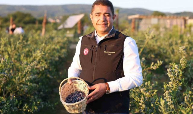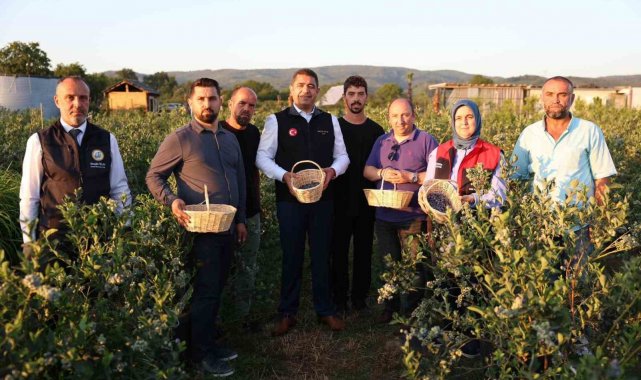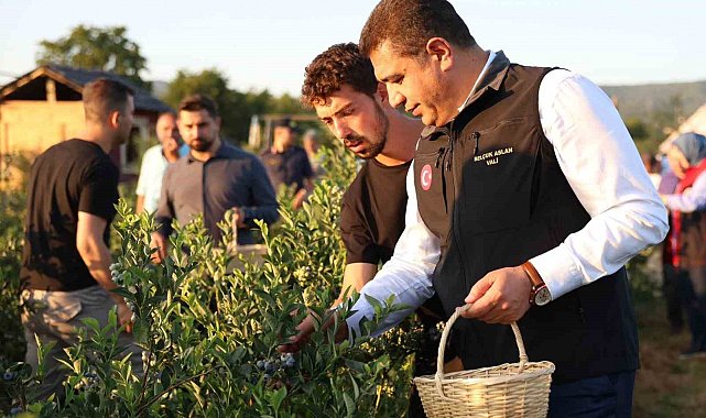 Düzce'de üniversiteli girişimcinin yetiştirdiği yaban mersinlerinin ilk hasadını Vali Selçuk Aslan elleriyle yaptı.