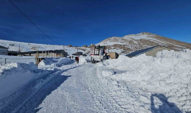 Süphan Dağı eteğindeki beldede zorlu kar mesaisi