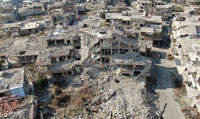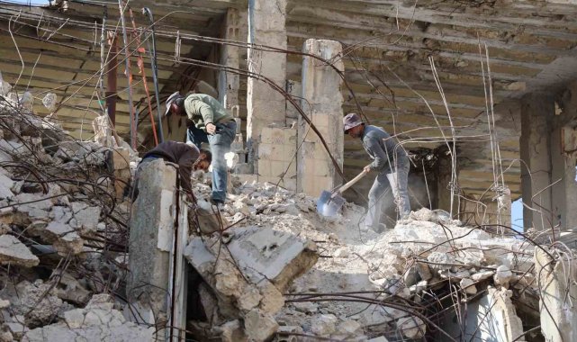 Suriye'de Beşar Esad rejimi tarafından bombalanan binalar onarılıyor.