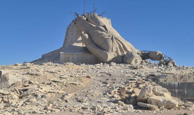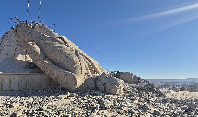 Suriye'de geçtiğimiz yıl Esad rejiminin yıkılmasının ardından Şam'ın yaklaşık 88 kilometre kuzeyinde bulunan ve "Heykel Tepesi" olarak bilinen noktaya iş makineleriyle çıkan halkın devirdiği Hafız Esad'ın ülkedeki en büyük heykeli hale devrik halde bulunuyor.