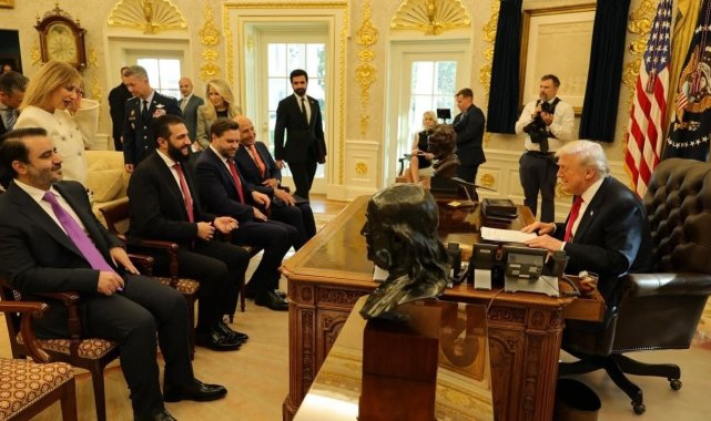 Suriye Devlet Başkanı Ahmed eş-Şara, Beyaz Saray'da ABD Başkanı Donald Trump ile bir araya geldi. Eş-Şara, Beyaz Saray'ı ziyaret eden ilk Suriyeli lider oldu.