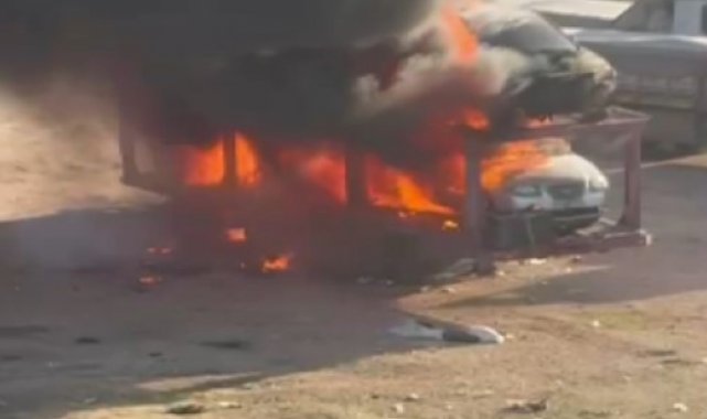 Suriyelilerin hayallerini süsleyen araçlar alevlere teslim oldu