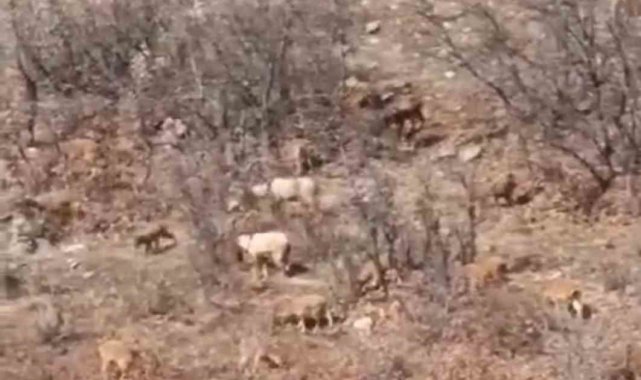 Elazığ'da avlama cezası 650 bin lira olan nesli tükenme tehlikesi atlındaki dağ keçileri sürü halinde görüntülendi.