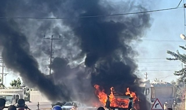 Mersin'in Erdemli ilçesinde yolcu taşıyan minibüs alev alev yandı. Sürücünün yolcuları hızla tahliye etmesi muhtemel facianın önüne geçti.