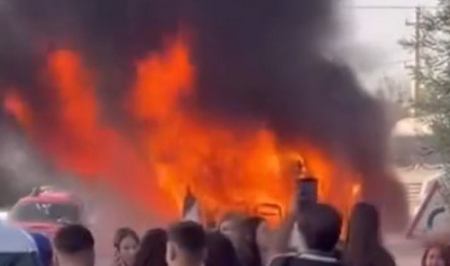 Sürücü yolcuları tahliye etti, minibüs alev alev yandı