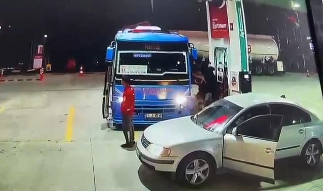 Olay, dün akşam merkez Sarıçam ilçesinde meydana geldi. İddiaya göre, yeni toplu taşıma düzenlemesi kapsamında Buruk güzergahında yeni özel halk otobüsü hatta dahil edildi. Bu duruma tepki gösteren dolmuş şoförleri ile özel halk otobüsü şoförleri arasında zaman zaman gerginlikler yaşandı. Dün akşam dolmuş sürücüsü Gıyasettin S. (26) ve kardeşi Veysel S. (25), akaryakıt istasyonunda yakıt alan özel halk otobüsü sürücüsü Oğuz Özdemir'e (26) taş ve sopalarla saldırdı. Saldırıda tabanca da kullanan şüpheliler, şoförü sopa ve yumruklarla darbetti. Gruptakilerden bir kişi de otomobille şoförü ezmeye çalıştı. Şoför şüphelilerin elinden kurtulup otobüse binerek bölgeden uzaklaşmak istedi. Bu sırada şüphelilerden biri, otobüsün açık olan kapısına tabancayla ateş etti. O anlar, iş yerinin güvenlik kamerasına yansıdı.