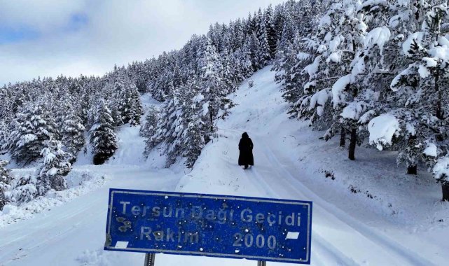 2 bin metre rakımda yer alan geçit, kar yağışının ardından ladin ve çam ormanlarıyla kaplı coğrafyasında seyrine doyumsuz manzaralar meydana getirdi.