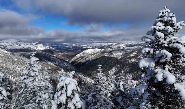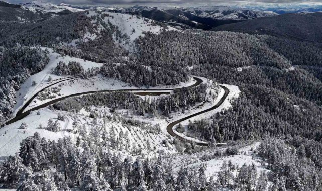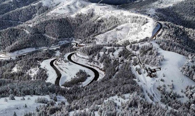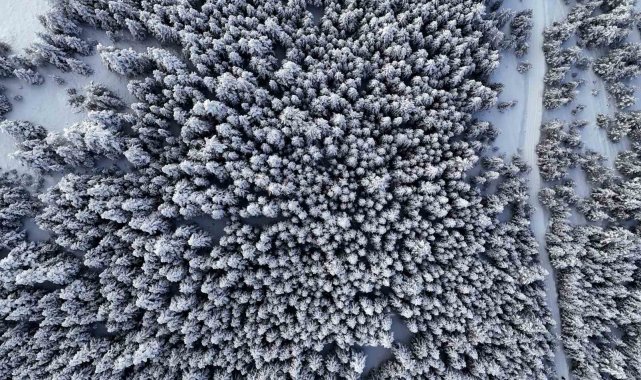 Kar yağışının ardından kristalize olan ağaç dalları ve bembeyaz örtüyle kaplanan dik yamaçlar, havadan çekilen görüntülerle bölgenin doğal güzelliğini bir kez daha kanıtladı.