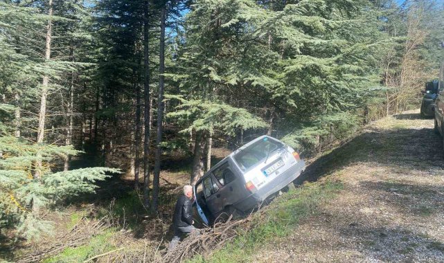 Sürücüsünün direksiyon hâkimiyetini kaybettiği otomobil ormanlık alana savruldu