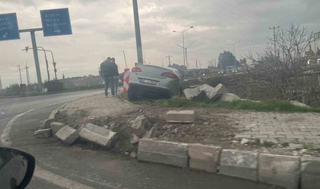Aydın'ın Söke ilçesinde yağış nedeniyle kayganlaşan yolda sürücüsünün direksiyon hakimiyetini kaybettiği otomobil yoldan çıktı. Maddi hasarla atlatılan kaza anı kameralara yansıdı.