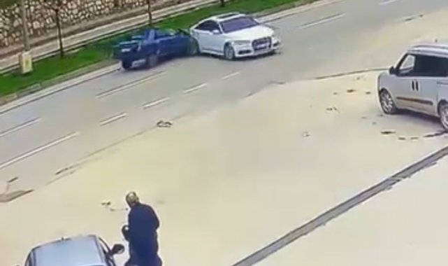 Bursa'nın Gemlik ilçesinde, otogara gelen bir sürücü aracını park ettikten sonra ayrıldı. El freni çekilmeyen araç bir süre sonra harekete geçti, manevra yaptı, anayola doğru ilerlemeye başladı. Sürücüsüz araç trafiğe çıkınca, seyir halindeki bir başka aracın çarpmasıyla yaşanan kaza güvenlik kamerasına anbean yansıdı. Şans eseri kazayı yara almadan atlatan sürücü, çarptığı araçta kimsenin olmadığını öğrenince şok üzerine şok yaşadı.