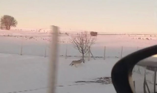 Sivas'ta tel örgülü alanda mahsur kalan bir kurdun kurtulma çabası cep telefonu kamerasına yansıdı. Kurt, bir süre çıkış aradıktan sonra telin üzerinden atlayarak sürüsüne kavuştu.