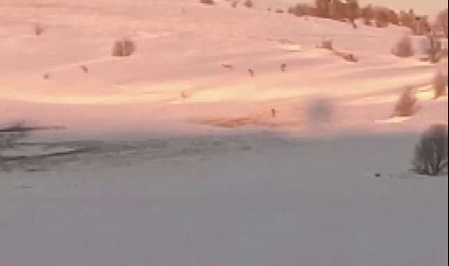 Sürüden ayrılarak mahsur kalan kurt, cep telefonu ile görüntülendi