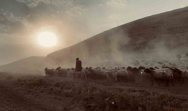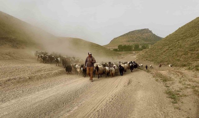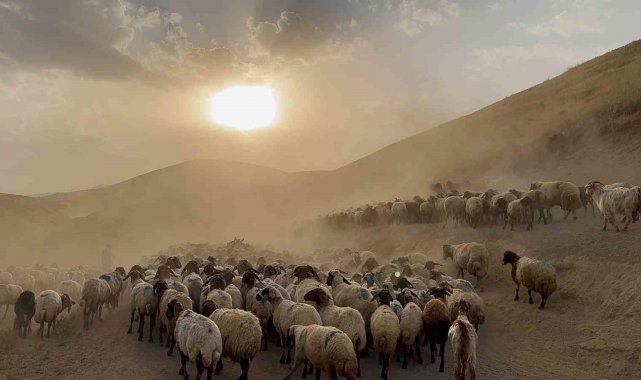 Bitlis'in Tatvan ilçesine bağlı Kıyıdüzü köyünde koyun sürülerinin Nemrut Dağı'ndaki yaylalara zorlu ve tozlu yolculuğu başladı.