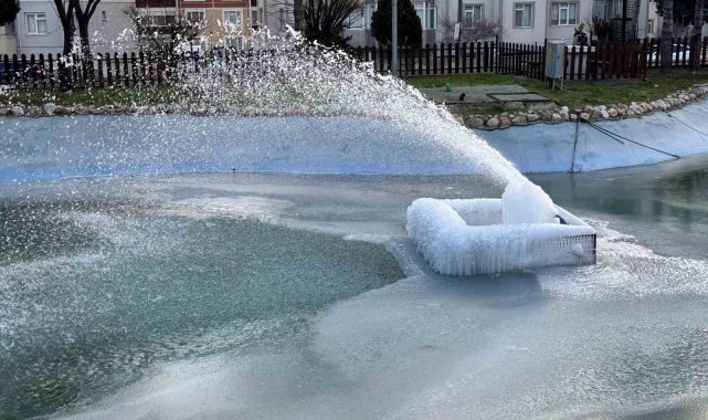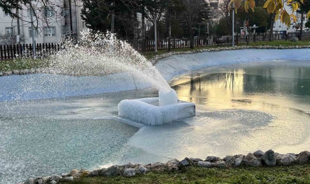 Barış Parkı içerisinde bulunan suni göletteki süs havuzları, dondurucu gece ayazına teslim oldu. Havuzdaki fıskiyelerden akan sular, havada donarak dev buz sarkıtları oluşturdu. Sabah saatlerinde parka gelen vatandaşlar, suyun akarken donmasıyla oluşan ve adeta bir sanat eserini andıran buz kütlelerini hayretle izledi. Sokağa çıkmak zorunda kalan az sayıdaki vatandaşın ise kat kat giyinerek soğuktan korunmaya çalıştığı görüldü.