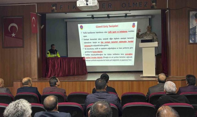 Susuz'da okul servis sürücülerine yönelik trafik kuralları, öğrenci taşımacılığı ve güvenli sürüş konularında eğitim verildi.